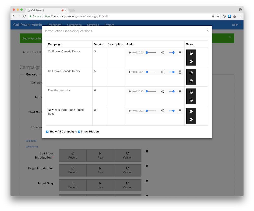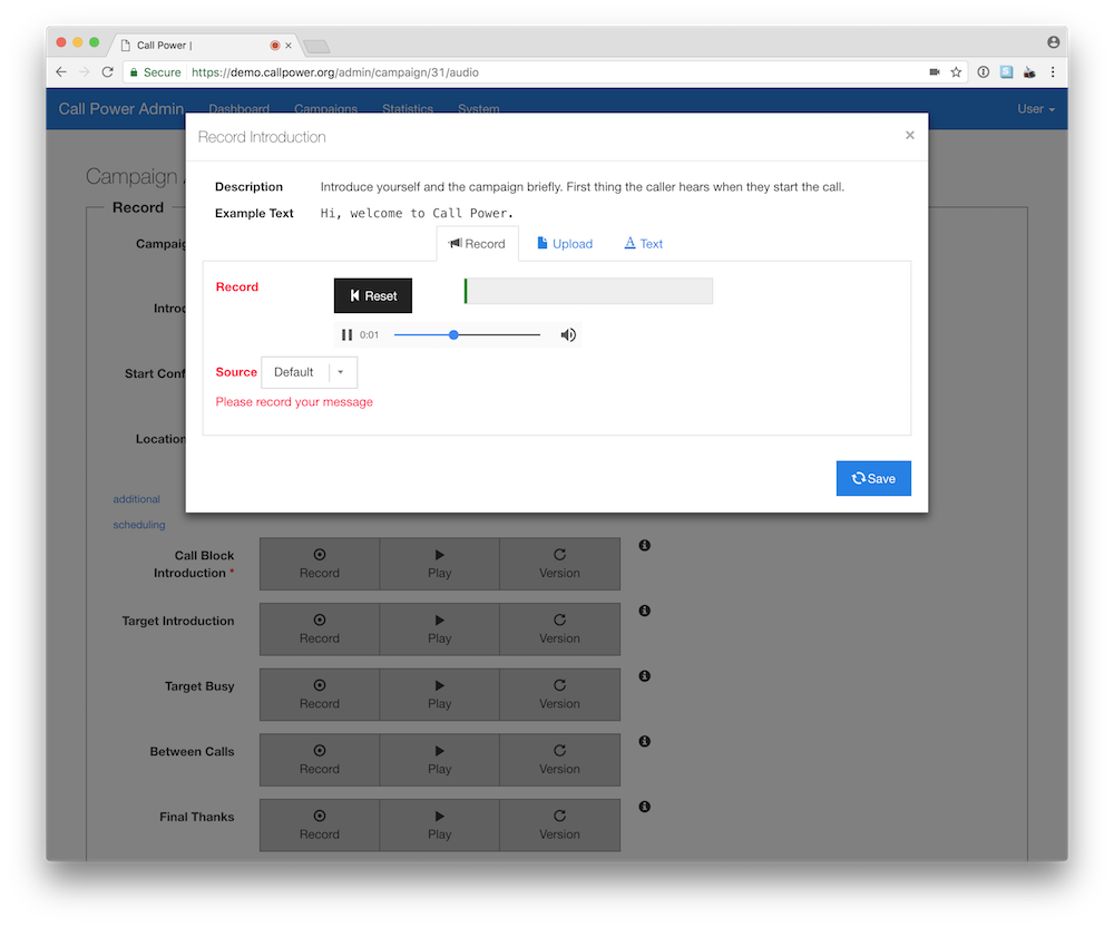 CallPower has a clean and user-friendly design, to make it easy to create and alter campaigns on-the-fly. We understand rapid-response organizing and built CallPower from the ground up for the modern web.